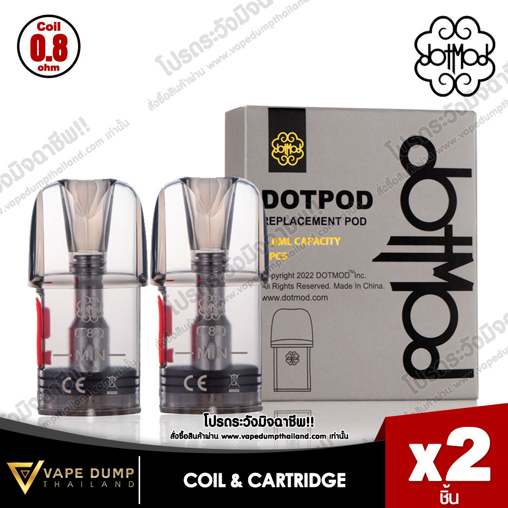 DOTMOD DOTPOD NANO REPLACEMENT POD 0.8รีฟีลสำรอง แพคละ 2 ชิ้น ความจุน้ำยา 2 ml ตัวนี้ไฟจ่ายสูงสุด 16 watt |