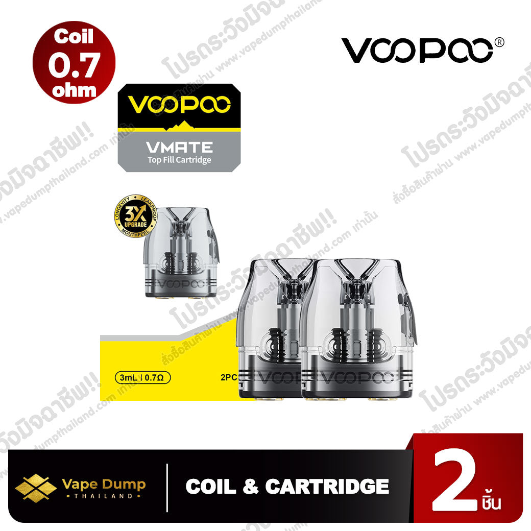Voopoo VMATE Cartridge V2 0.7 โอห์มรีฟีลแบบเปลี่ยนหัวได้ ของเครื่อง Vmate ขนาดบรรจุน้ำยา 3 ml สามารถใช้ร่วมกันกับ vthru / vmate E / Vmate infinity ตัวนี้ฟีลสูบจะโล่งๆ สูบมันส์มากๆ |