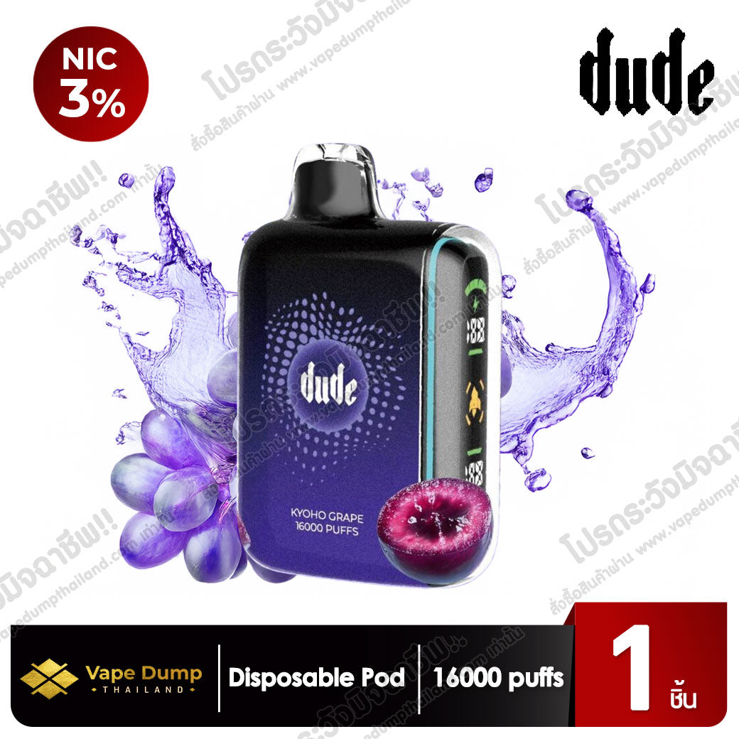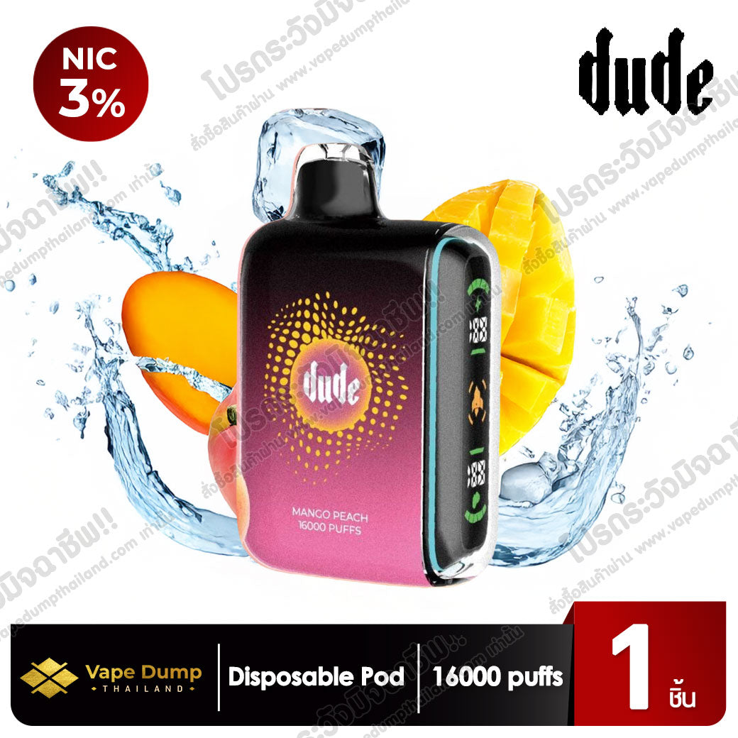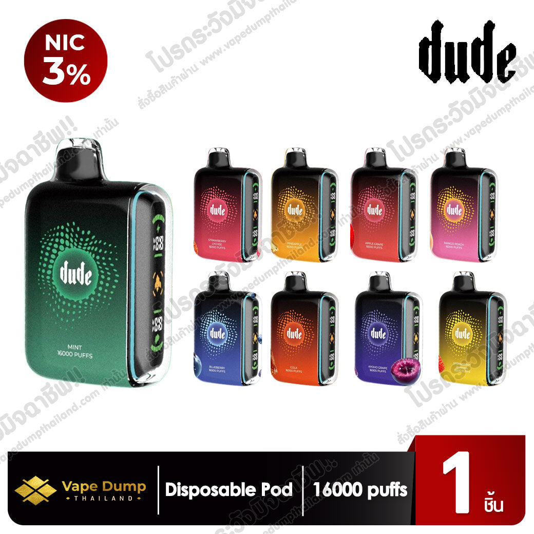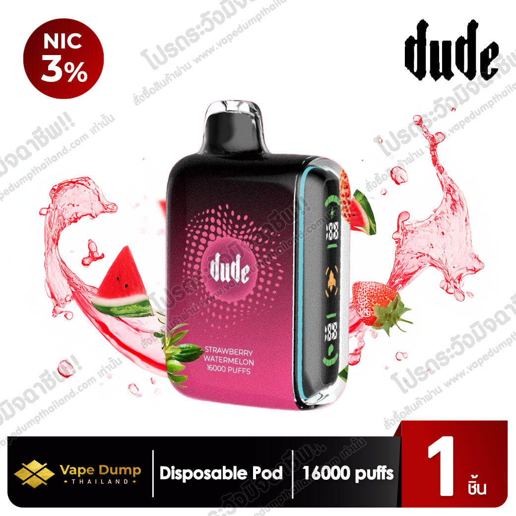 Dude 16K Disposable Pod พอตใช้แล้วทิ้งรุ่นฮิตที่มาพร้อมดีไซน์โฉบเฉี่ยว จับถนัดมือ และรองรับการสูบได้มากถึง 16,000 Puffs เต็มอิ่มทุกการใช้งาน เหมาะสำหรับทั้งมือใหม่และสายควันที่ต้องการพอตที่ใช้งานง่าย ไม่ต้องดูแลมาก