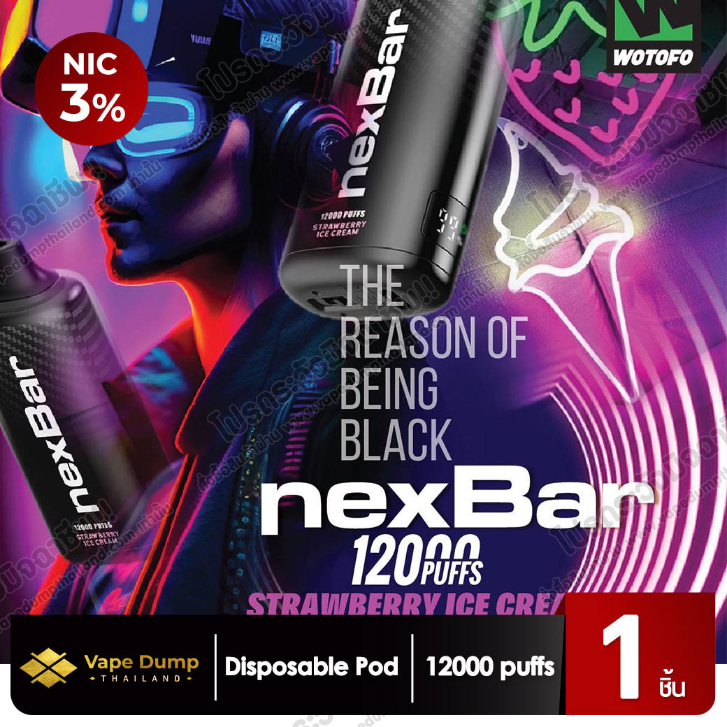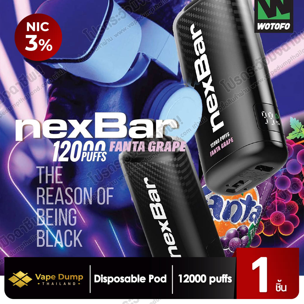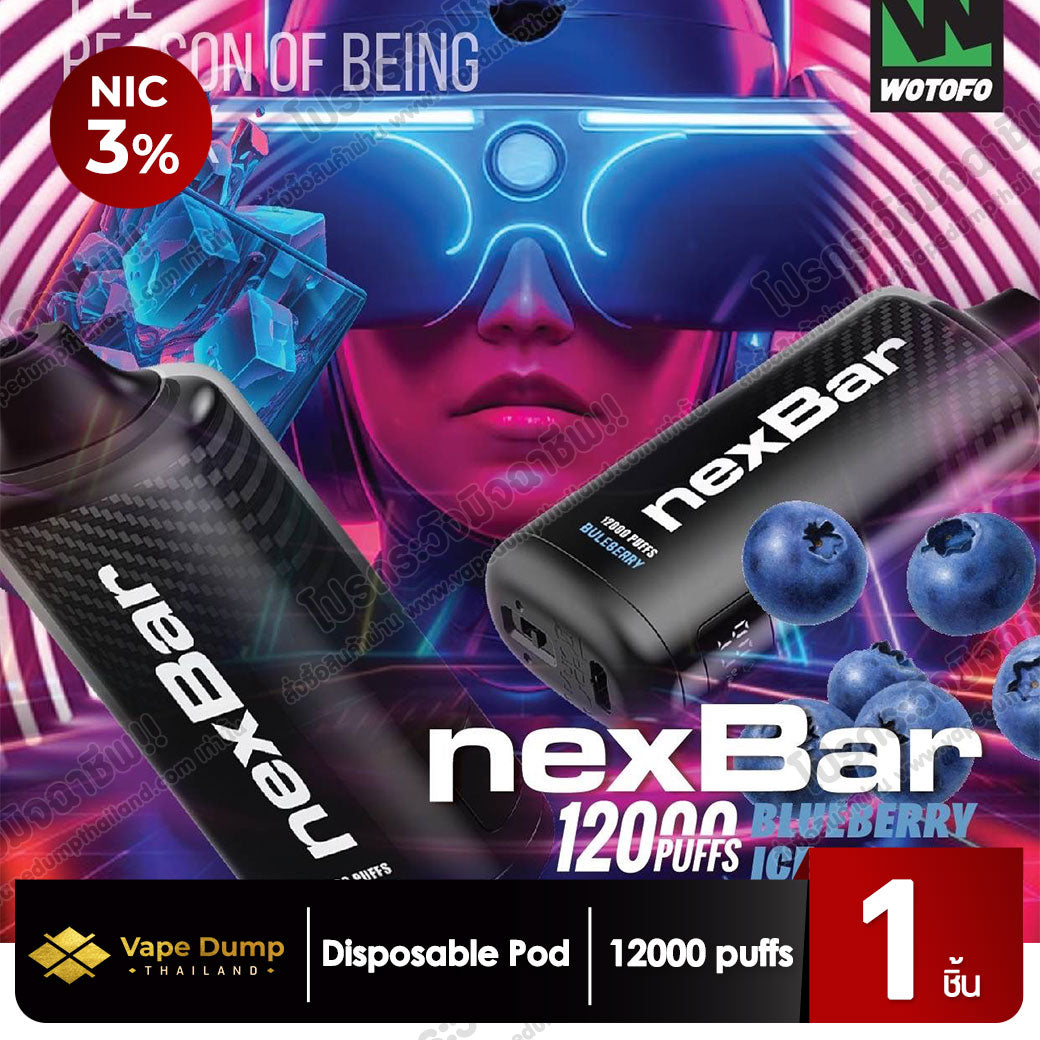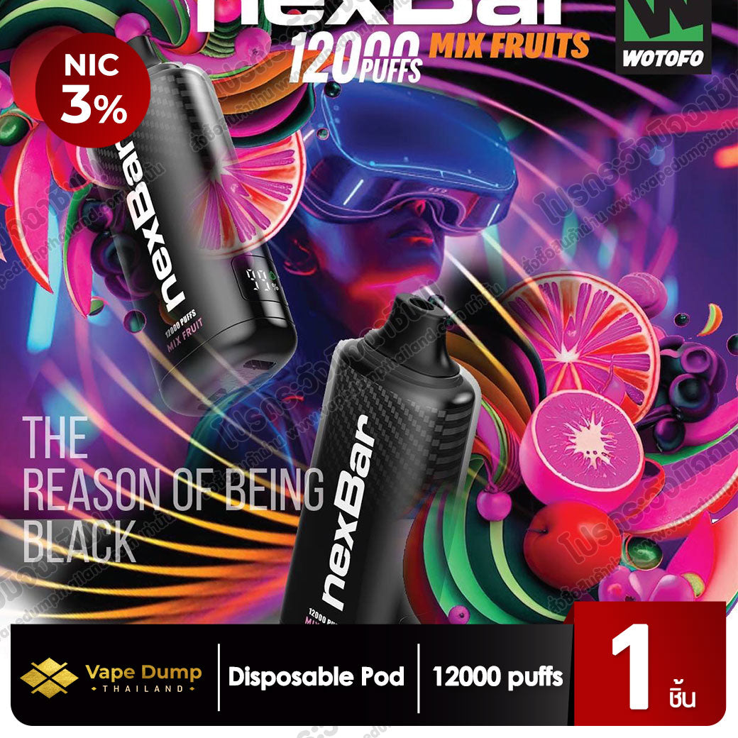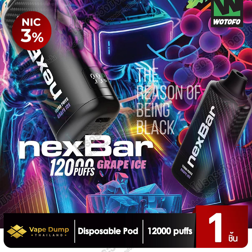 Wotofo NexBar 12000 Puff มีหน้าจอบอก ปริณมาณแบตเตอรี่ และ น้ำยา