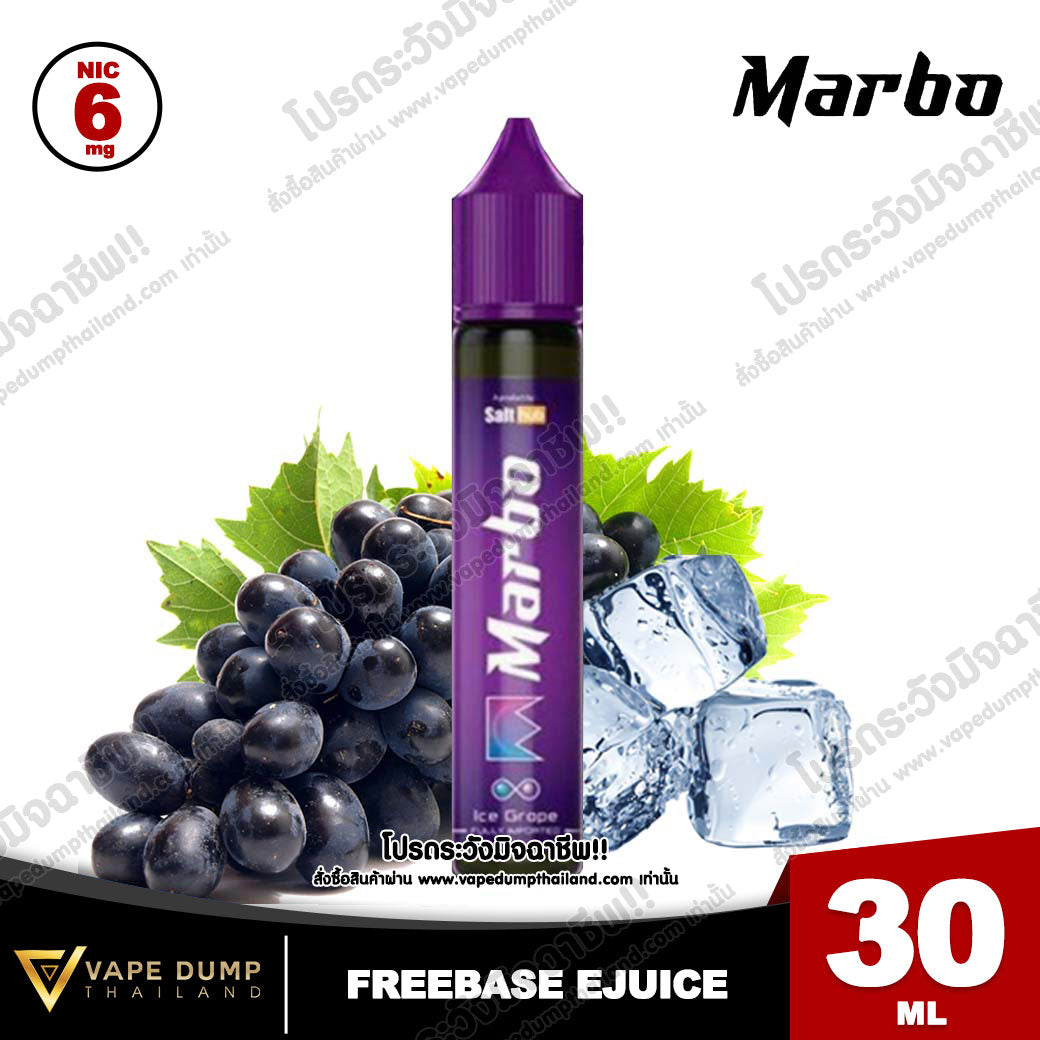 MARBO GRAPE FREEBASEน้ำยาบุหรี่ไฟฟ้ารสชาติองุ่นหอมหวาน เย็นสดชื่น ตัวนี้นิโคติน 6 mg นะครับ ความเย็นสะใจวัยรุ่นมากๆ ระดับความเย็น 4/5 |