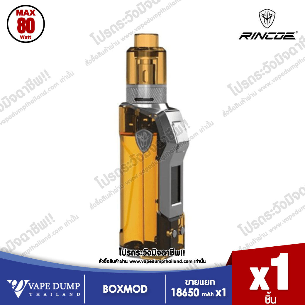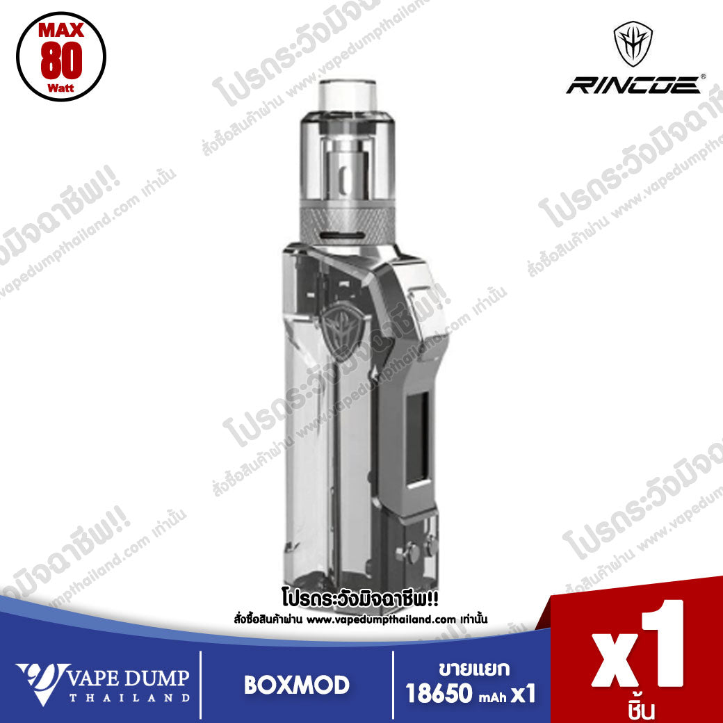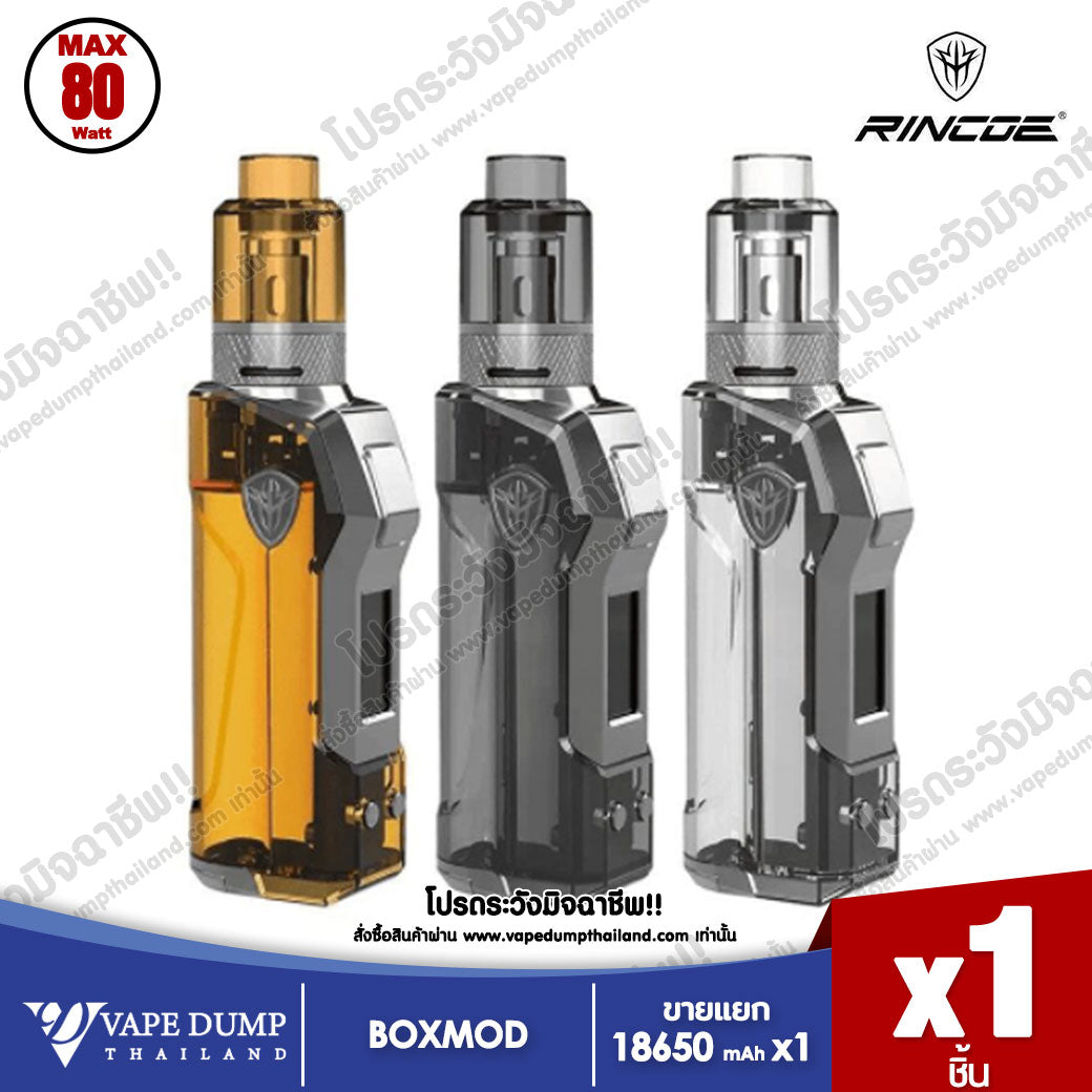 Rincoe JellyBox Mini 80W Kit เป็นกล่องบุหรี่ไฟฟ้าแบบปรับวัตต์ได้ มาพร้อมอะตอม โดยในกล่องประกอบด้วย Jellybox Mini Box Mod และ Jellytank ตัวเครื่องสวยงามโปร่งใสโชว์ภายใน และมีกรอบสแตนเลสดูหรูหรา ปุ่มยิงไฟออกแบบมาได้สวยและปุ่มปรับวัตต์ที่ขอบจอด้านล่าง JellyBox Mini Box ใช้กับแบตเตอรี่ 18650/20700/21700 จ่ายไฟได้สูงสุด 80W