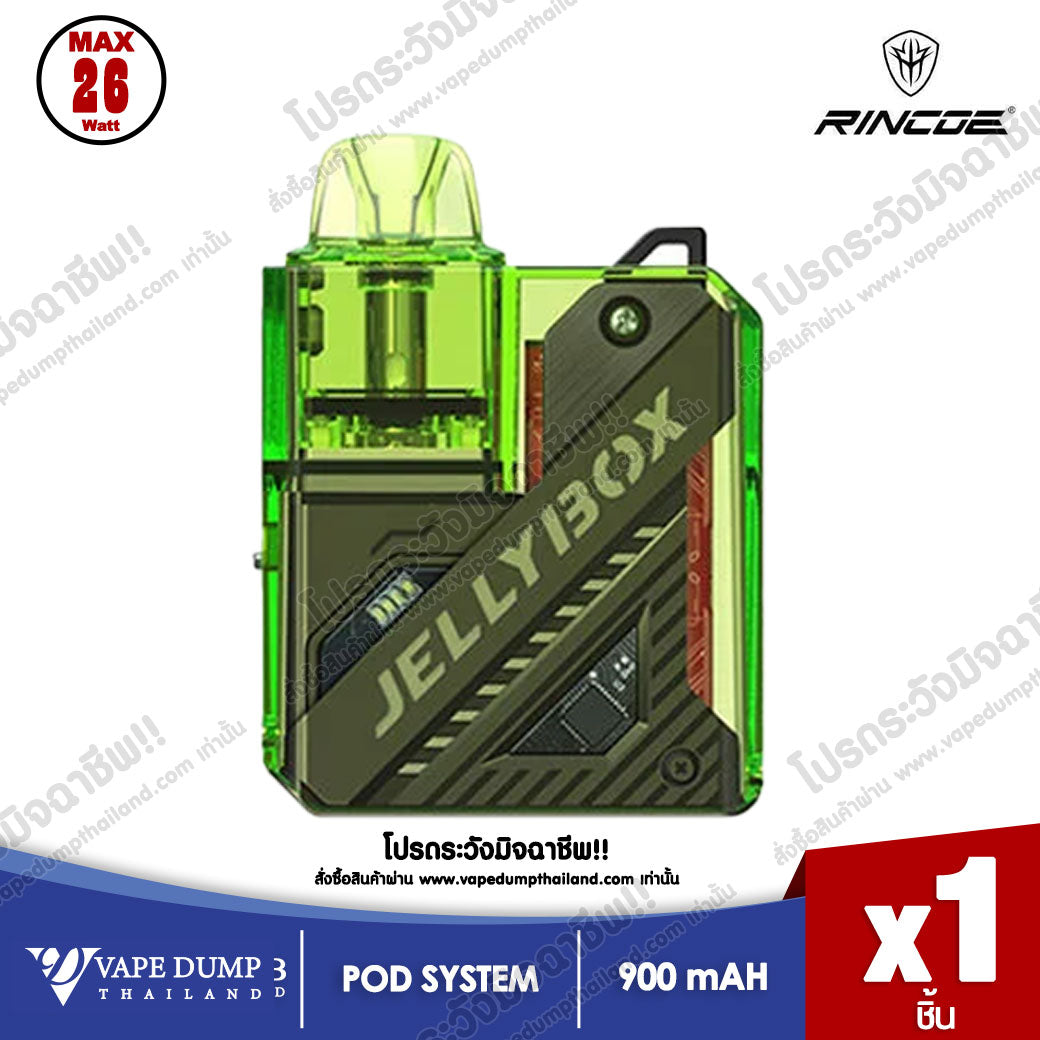 โดย Rincoe JellyBox Nano 2 เป็นระบบสูบแบบออโต้ เป็นเครื่องที่ให้กลิ่น และ รสชาติมาแบบเต็มที่ และ ตัวเครื่องมีความจุแบตเตอรี่ 900 mAh กำลังไฟวัตต์ 1-26W ชาร์จเร็วด้วย USB Type-C มีไฟสถานะแจ้งเตือนต่างๆของเครื่อง