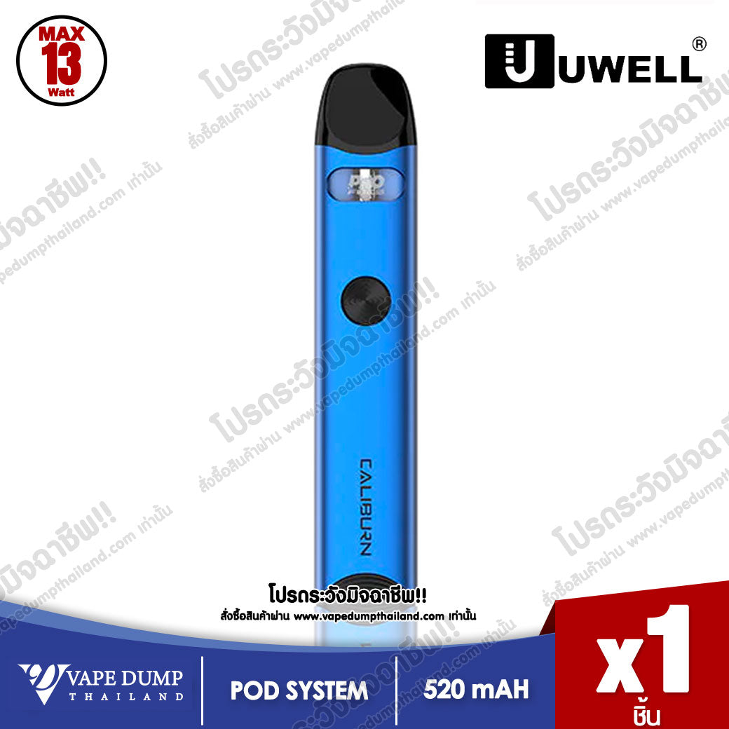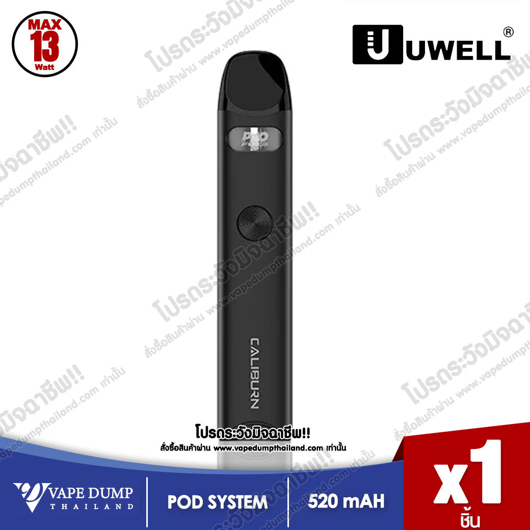UWELL CALIBRUN A3 Pod Kit มาพร้อมกำลังไฟสูงสุด 15W และ แบตเตอรี่ในตัว 520 mAh ตัวเครื่องมีขนาดเล็กกะทัดรัด วัสดุอลูมิเนียมอัลลอยด์ หรูหรา พรีเมี่ยม และทนทาน