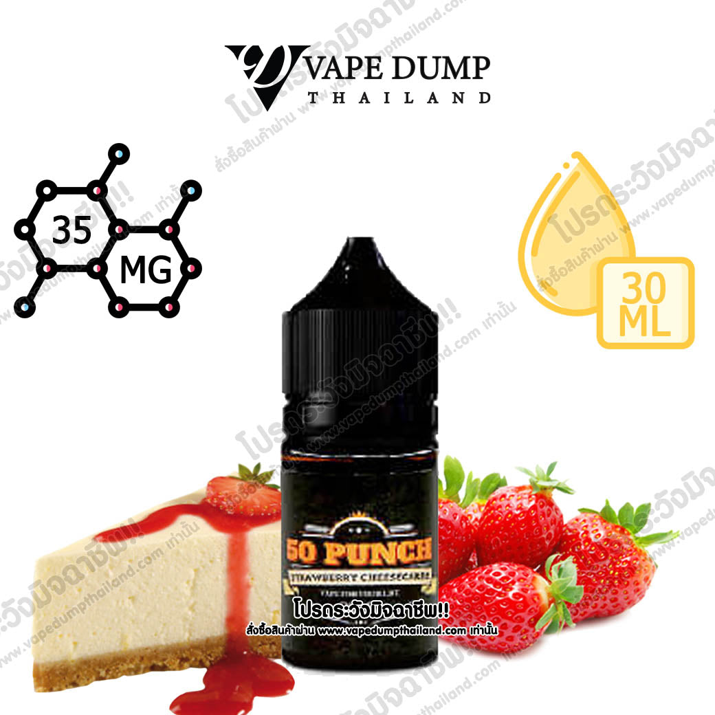 50 Punch Saltnic – Strawberry Cheesecakeสตอชีสเค้ก ตัวนี้เป็นน้ำยาสายขนม ใครที่อยากลองขนมฝั่งมาเล ต้องหามาลองให้ได้ เป็นน้ำยาที่หอม และ หวาน ในสไตล์ที่ไม่เหมือนใคร |
