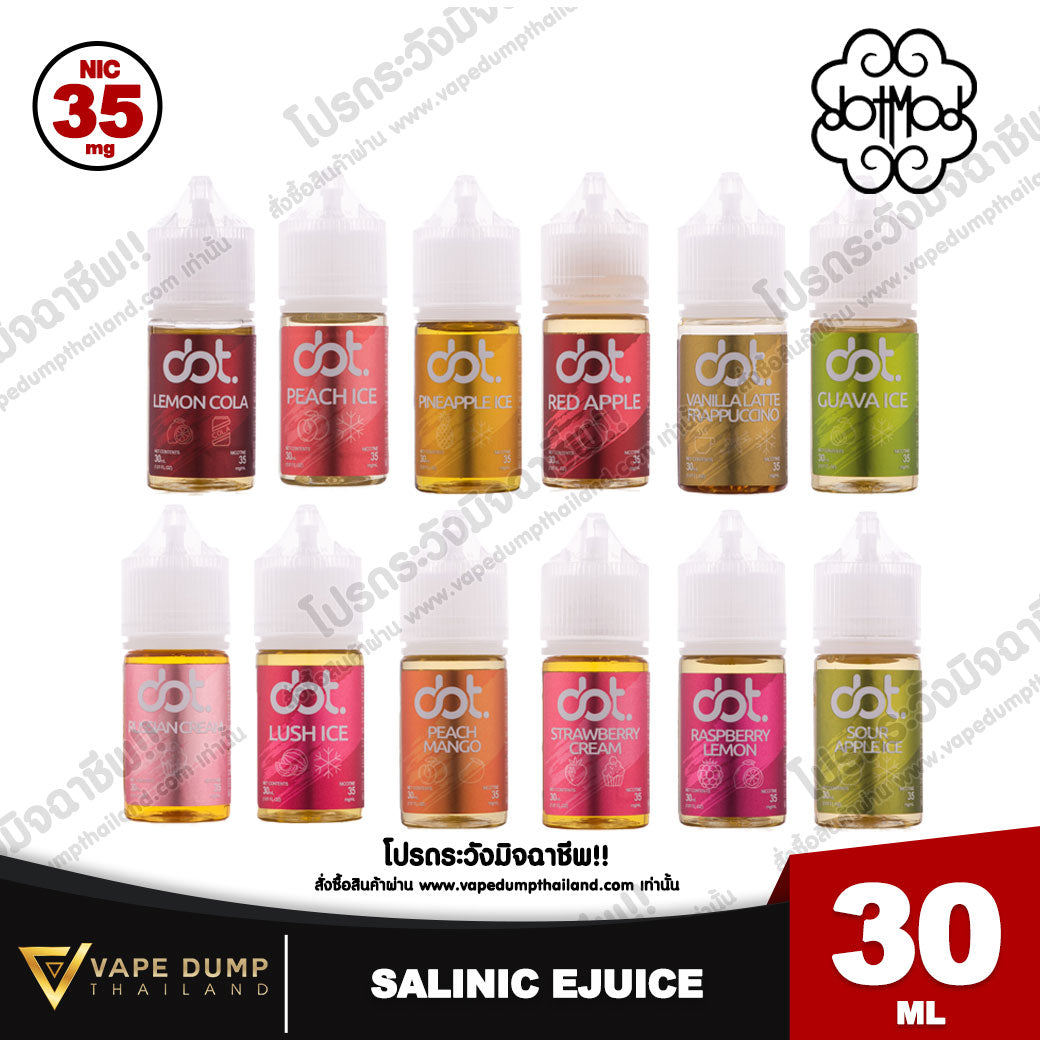 - Dot Juice ใช้นิโคตินเกรดพรีเมียม สูบนุ่มลื่น ไม่ระคายคอ