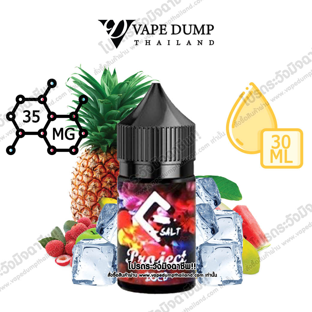 PROJECT ICED FRUIT FACTORYเป็นน้ำยาซอลต์นิค ที่นำส่วนผสมของผลไม้ สัปปะรด ส้ม ลิ้นจี่ เบอรี่ และอีกนานาพันธุ์ มีความหอม หวาน เปรี้ยว เย็นสดชื่นมากๆ ระดับความเย็น 4/5 |